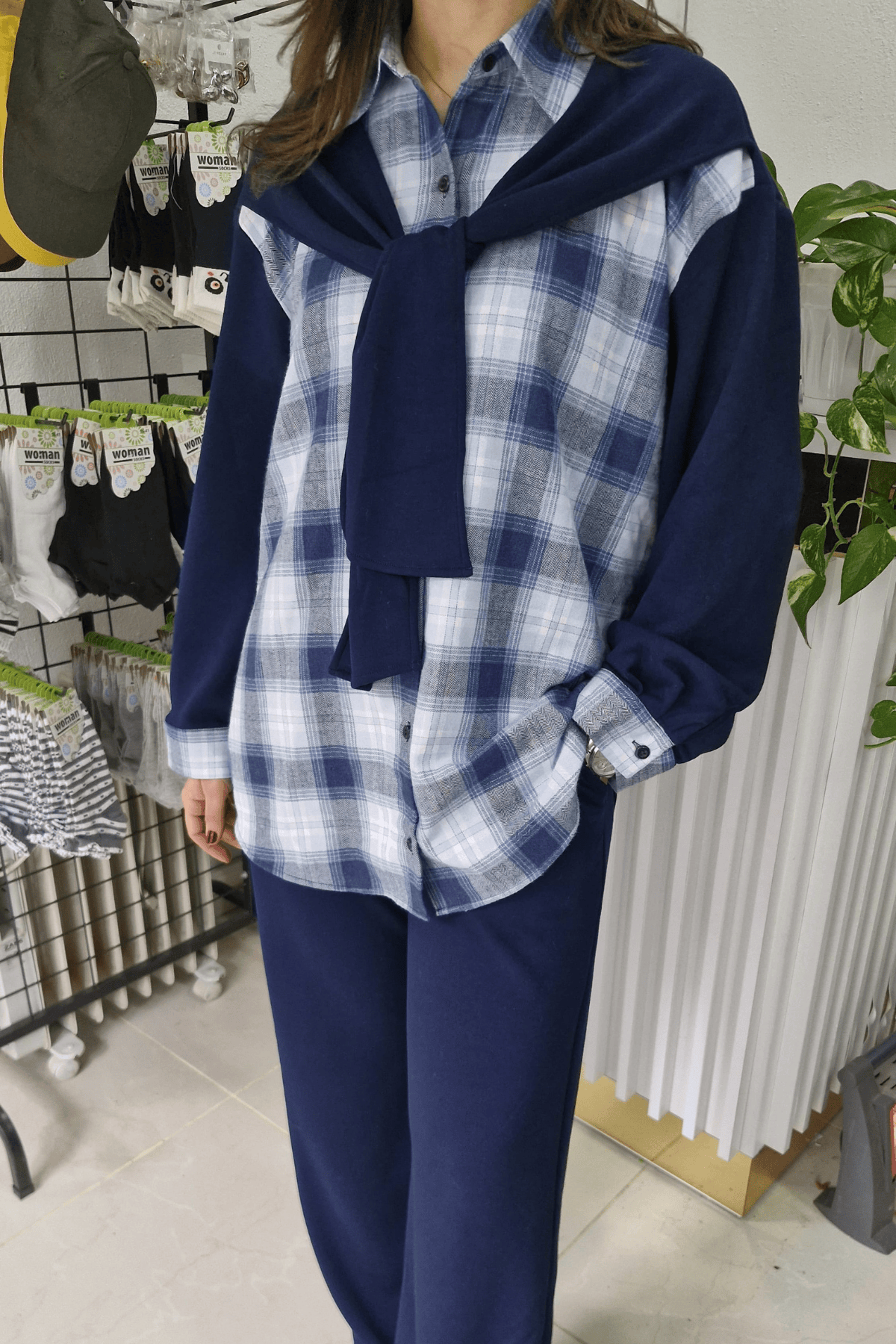 Önü ekose detaylı, arkası ve kolları modal kumaştan tasarlanan üst ile rahat kesim pantolondan oluşan takım. Yumuşak dokusu ve modern görünümüyle günlük kullanıma uygundur.