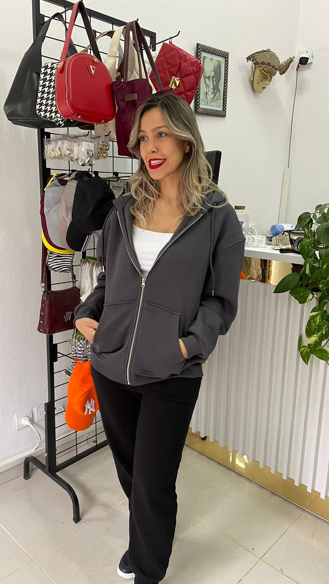 3 İplik Şardonlu Cepli Oversize Eşofman Üstü.