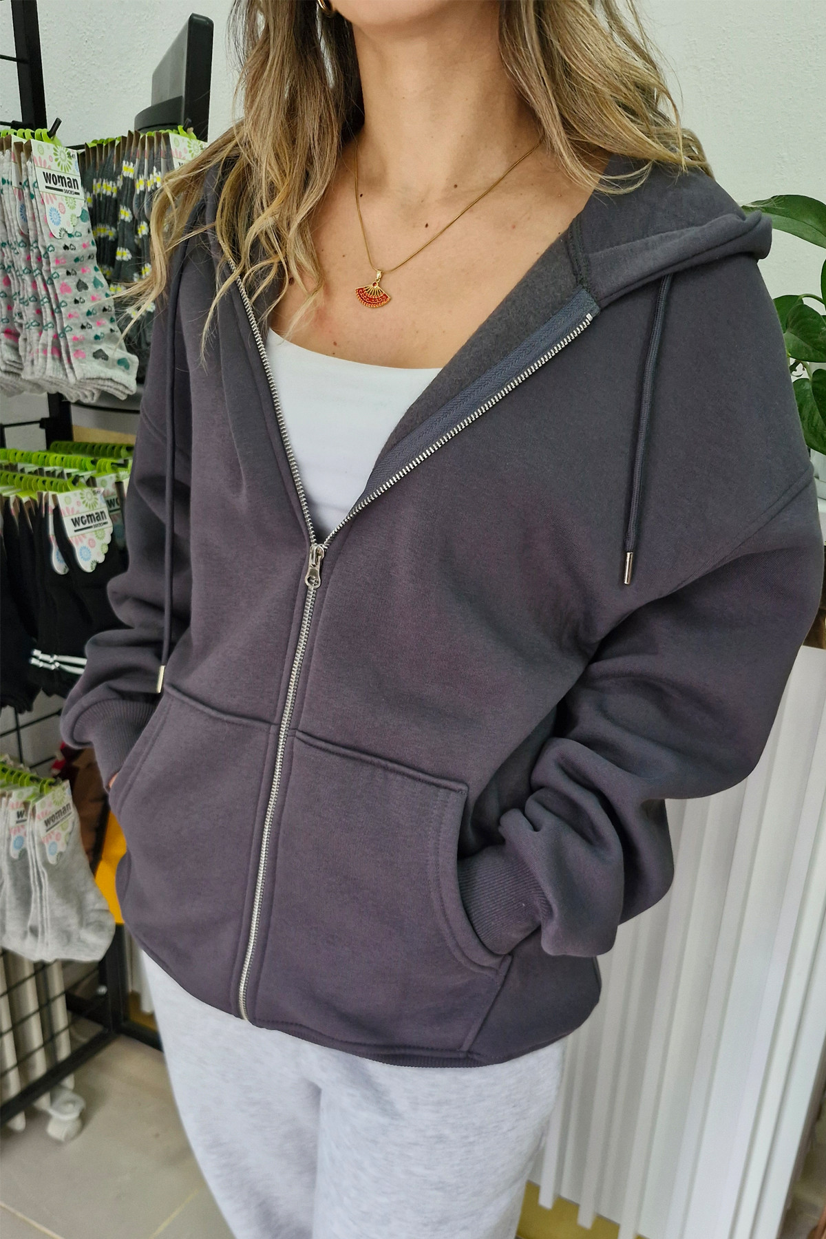 3 iplik şardonlu kumaştan üretilmiş fermuarlı oversize eşofman üstü, yumuşak iç yüzeyi sayesinde sıcak tutar ve gün boyu konfor sağlar. Kapüşonlu tasarımı ve rahat kalıbı ile günlük ve spor kullanıma uygundur.