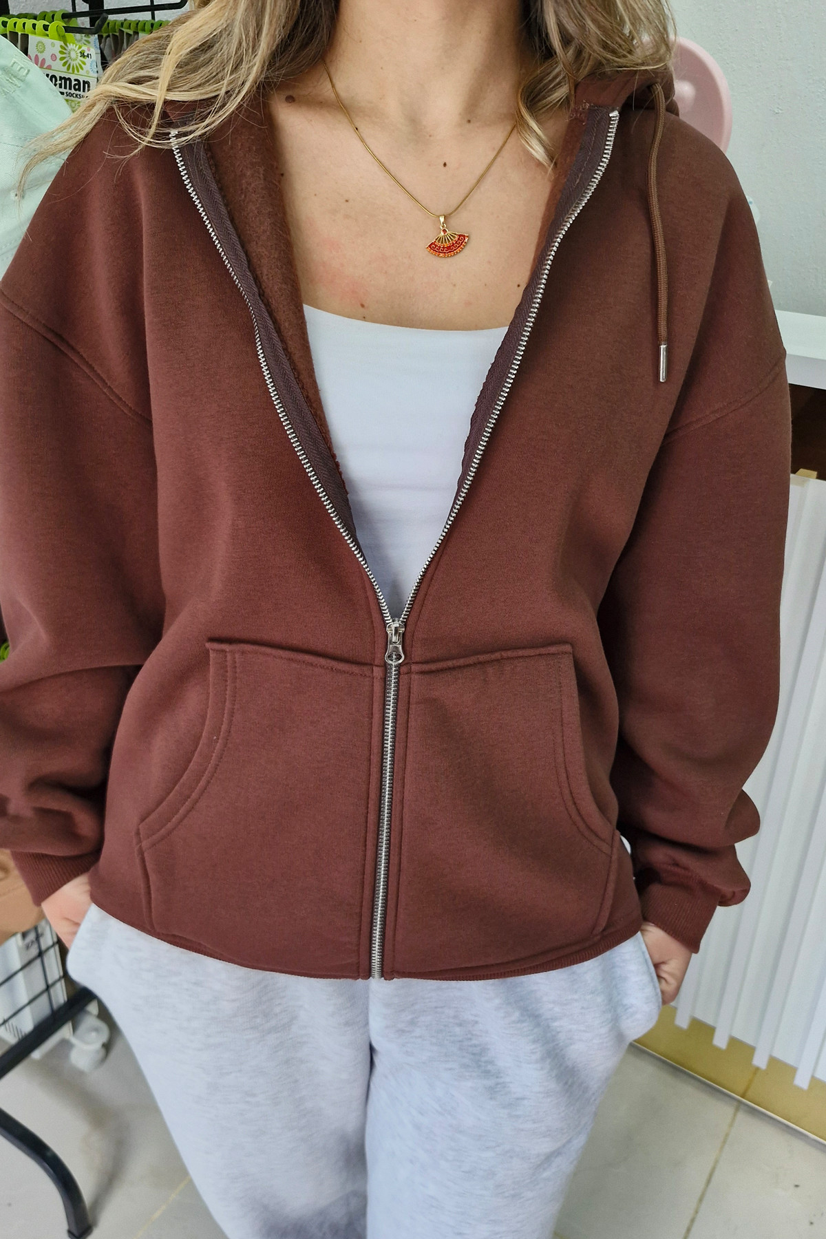 3 iplik şardonlu kumaştan üretilmiş fermuarlı oversize eşofman üstü, yumuşak iç yüzeyi sayesinde sıcak tutar ve gün boyu konfor sağlar. Kapüşonlu tasarımı ve rahat kalıbı ile günlük ve spor kullanıma uygundur.
