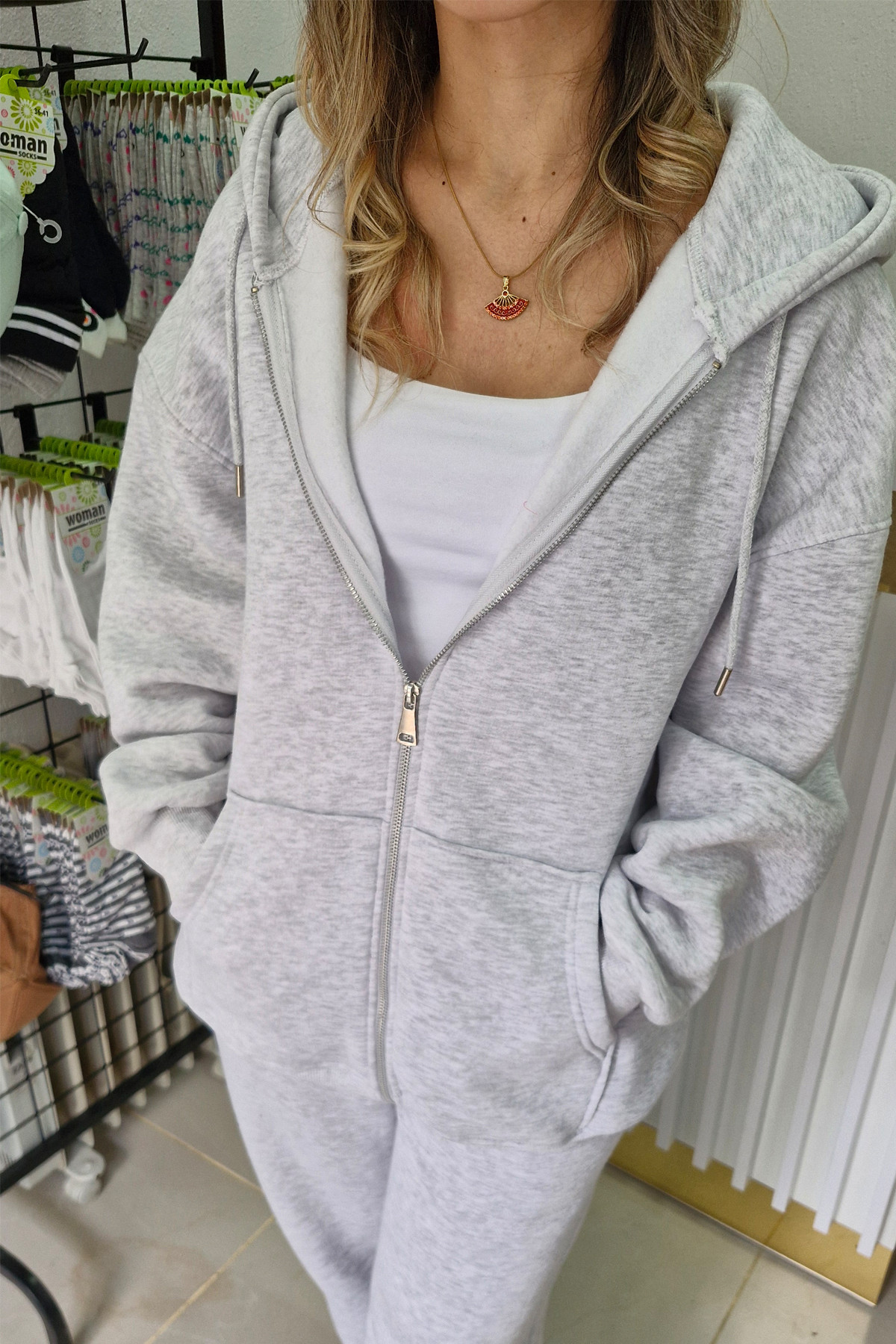 3 iplik şardonlu kumaştan üretilmiş fermuarlı oversize eşofman üstü, yumuşak iç yüzeyi sayesinde sıcak tutar ve gün boyu konfor sağlar. Kapüşonlu tasarımı ve rahat kalıbı ile günlük ve spor kullanıma uygundur.