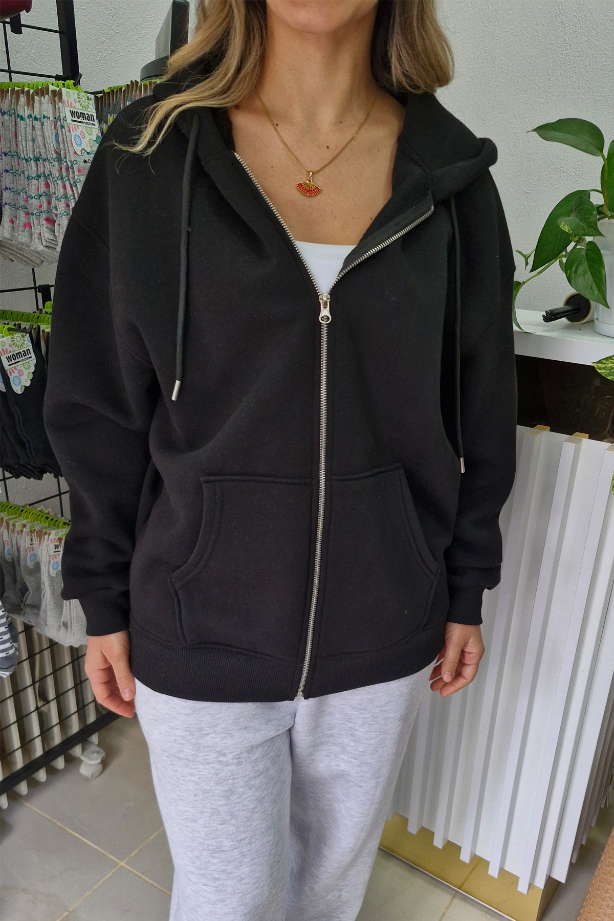 3 iplik şardonlu kumaştan üretilmiş fermuarlı oversize eşofman üstü, yumuşak iç yüzeyi sayesinde sıcak tutar ve gün boyu konfor sağlar. Kapüşonlu tasarımı ve rahat kalıbı ile günlük ve spor kullanıma uygundur.