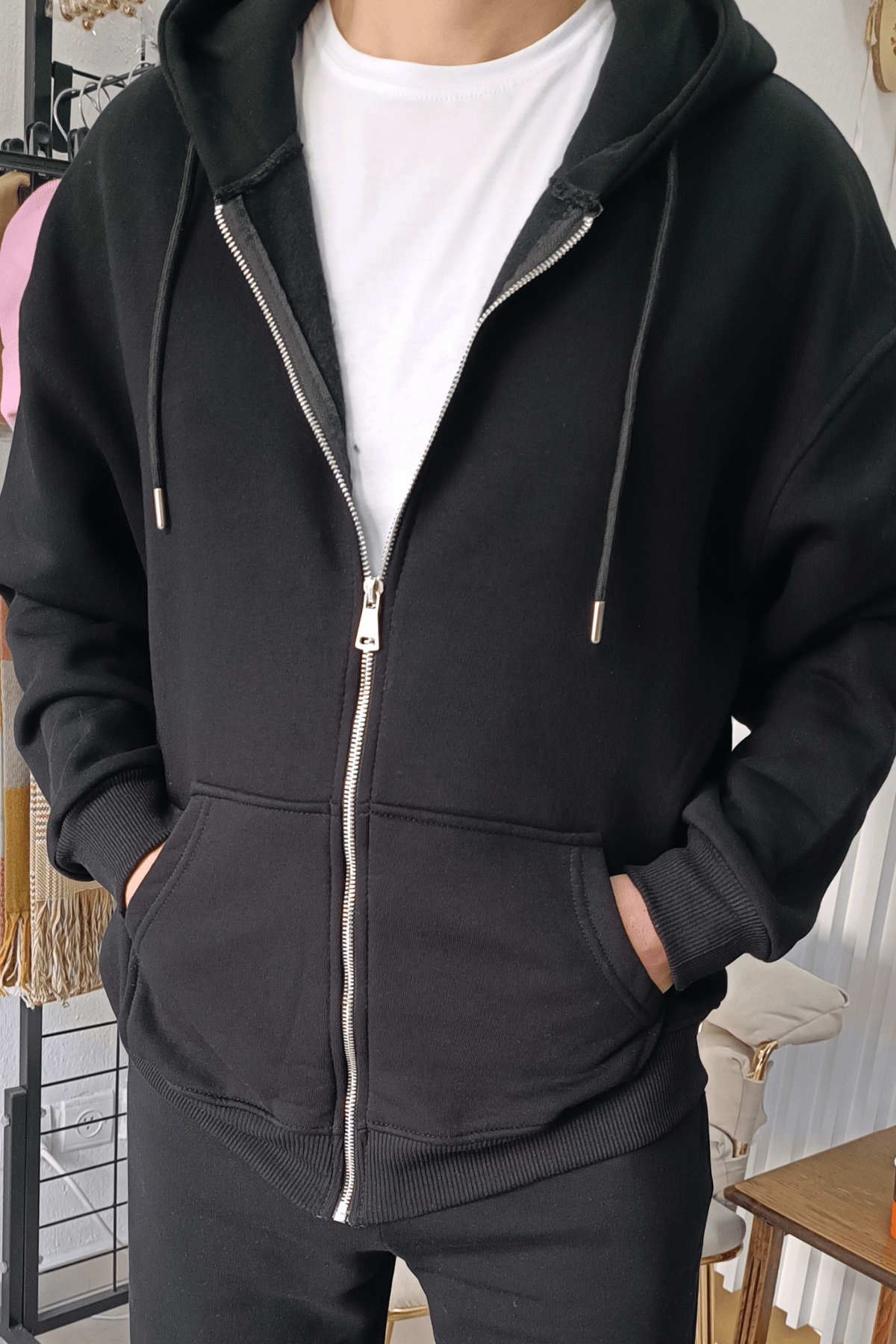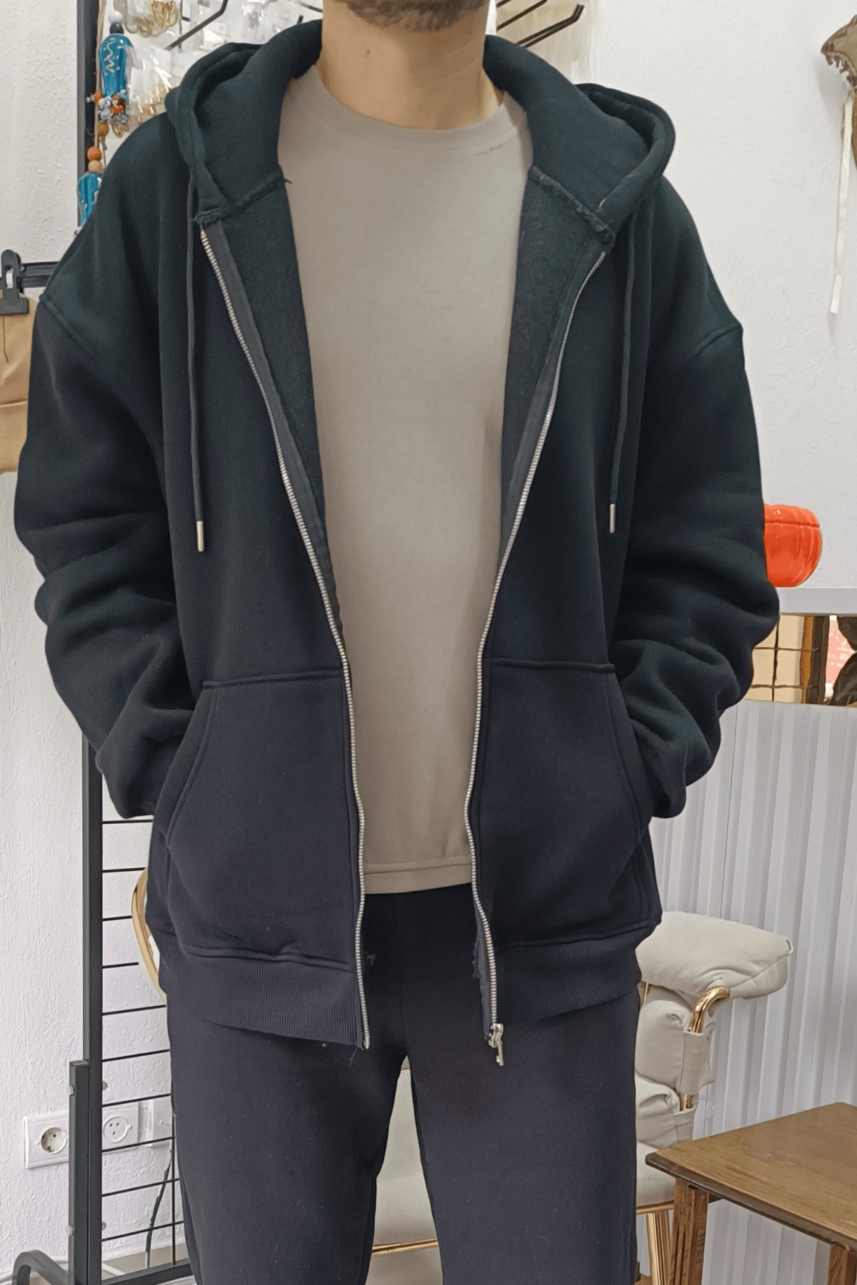 3 iplik şardonlu kumaştan üretilmiş fermuarlı oversize eşofman üstü, yumuşak iç yüzeyi sayesinde sıcak tutar ve gün boyu konfor sağlar. Kapüşonlu tasarımı ve rahat kalıbı ile günlük ve spor kullanıma uygundur.